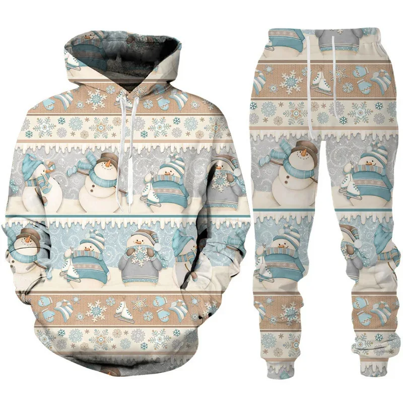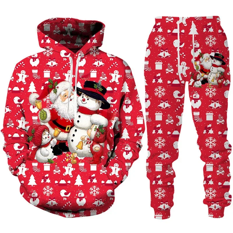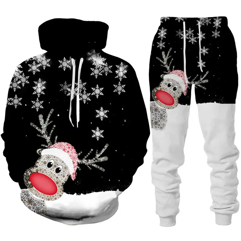 Conjunto Desportivo Masculino Natal 3D – Hoodie + Calças Inverno